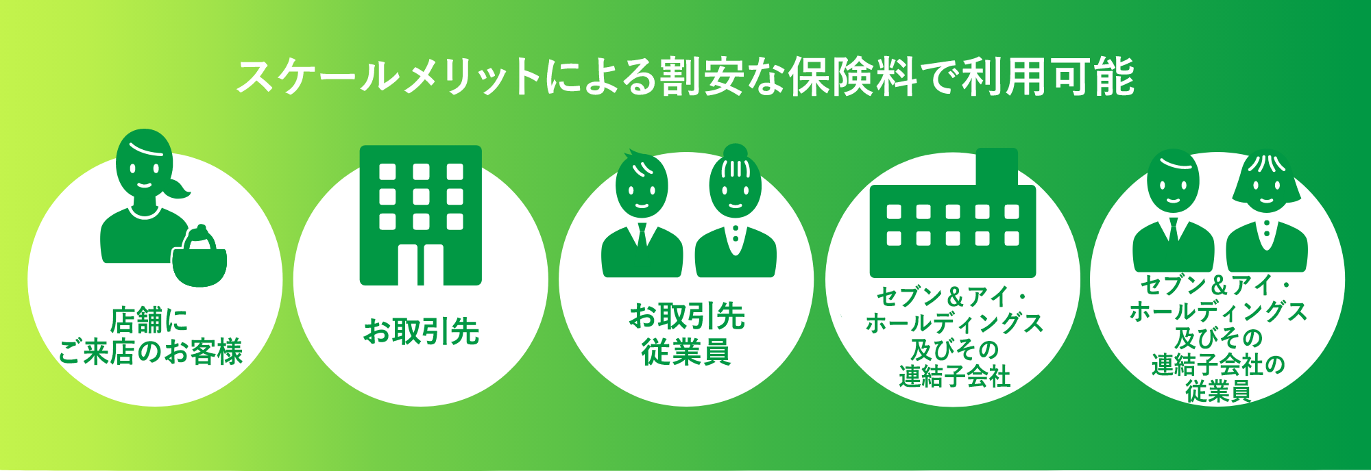 セブン-イレブン・ジャパン、イトーヨーカ堂、ヨークベニマルなどのお客様・お取引先・事業会社・従業員に対して、損害保険・生命保険の販売等を通して、万一の際の補償の充実、防災・減災等のサポートを行っています。